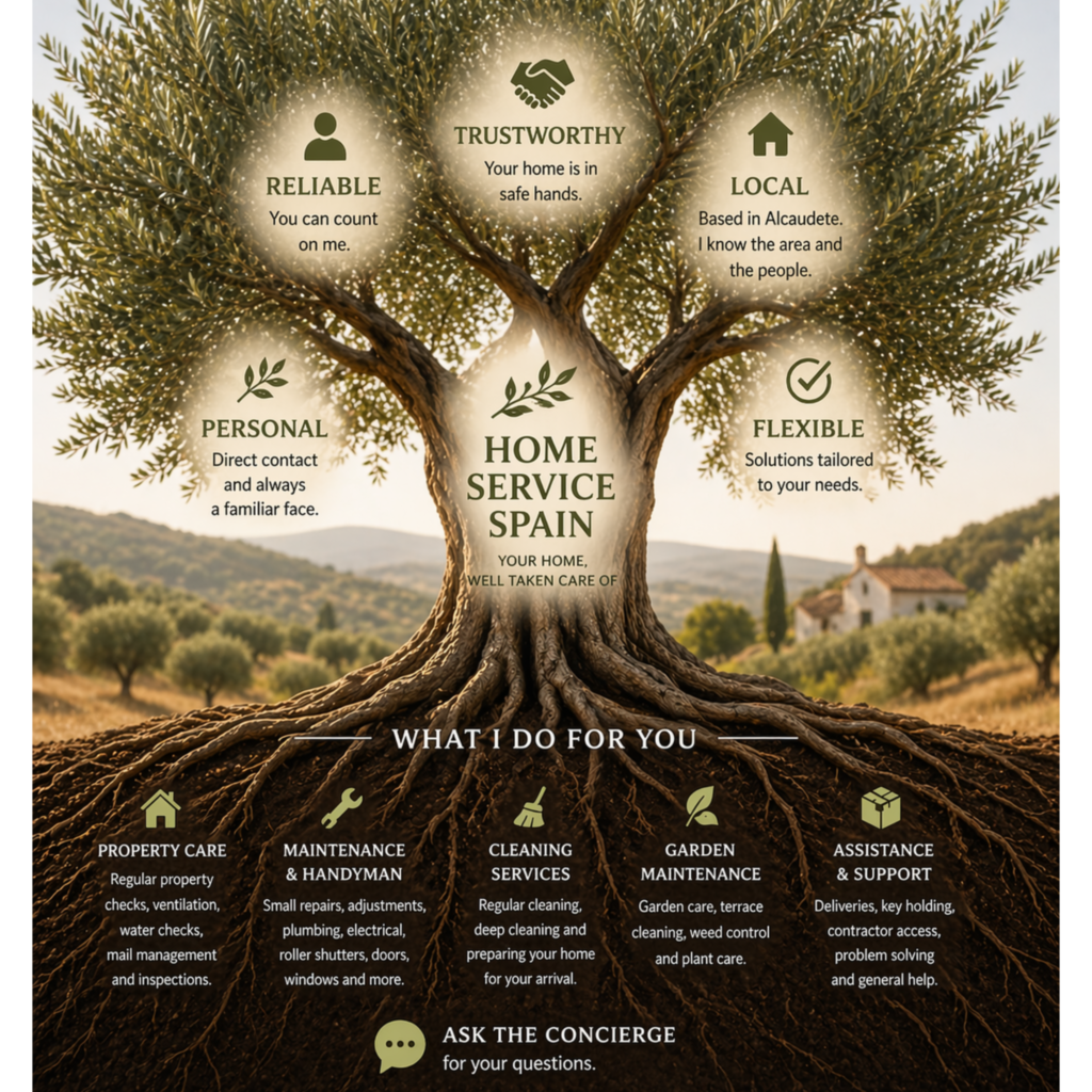 The focus is on trust, ease of use and personal contact. I provide reliable property care and act as your local house concierge in Alcaudete and surrounding areas.